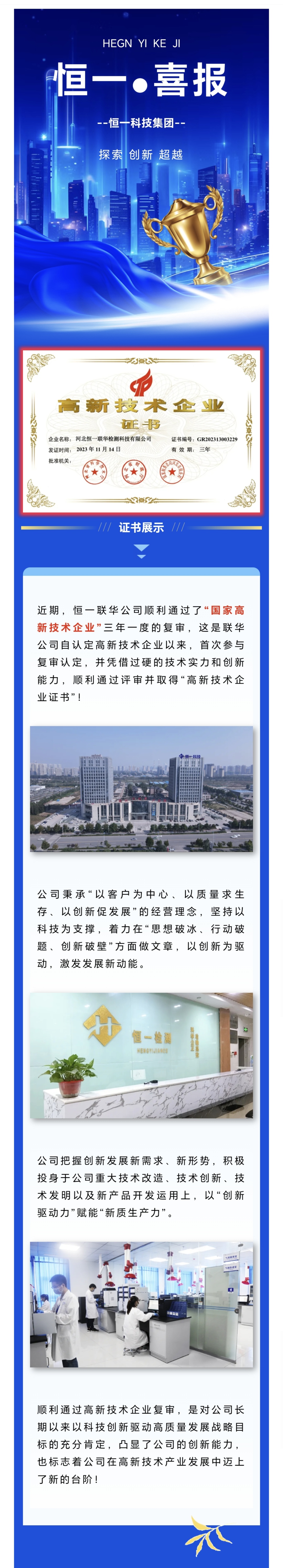 喜報(bào)丨熱烈祝賀恒一聯(lián)華公司順利通過“高新技術(shù)企業(yè)”復(fù)審!