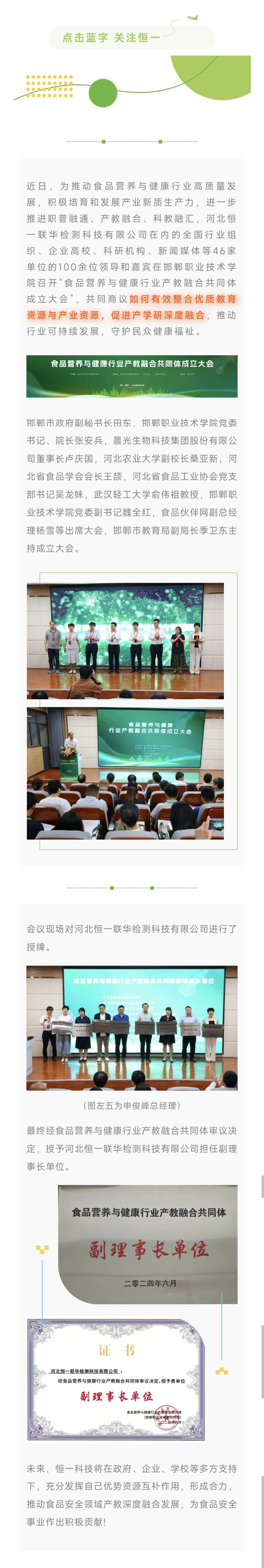 食品營養(yǎng)與健康行業(yè)產(chǎn)教融合共同體成立,恒一科技被推選為副理事長單位