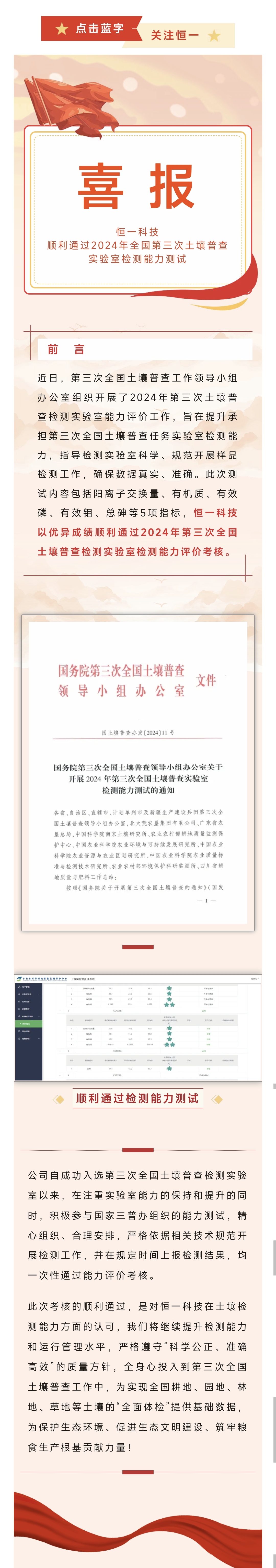 喜 報 | 恒一科技順利通過2024年全國第三次土壤普查實驗室檢測能力測試