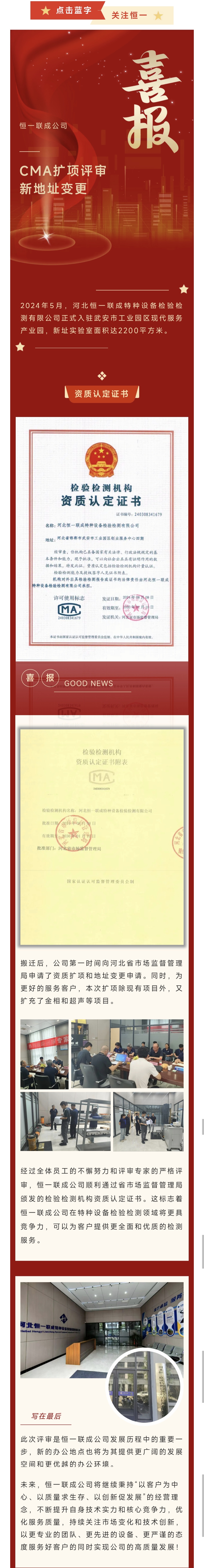 喜 報(bào) | 恒一聯(lián)成公司新篇章:CMA擴(kuò)項(xiàng)評(píng)審+地址變更圓滿通過!